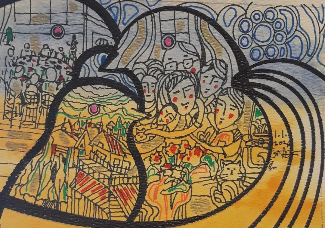 Since the war began on February, 24th, 2022, artist Lin Shih Pao has painted one artwork every day as a prayer for Ukraine. Each painting carries the same blue and yellow background — the colors of the Ukrainian flag. What evolves are the lines, forms, and symbols, creating a visual diary of both an emotional journey and a growing global mission.