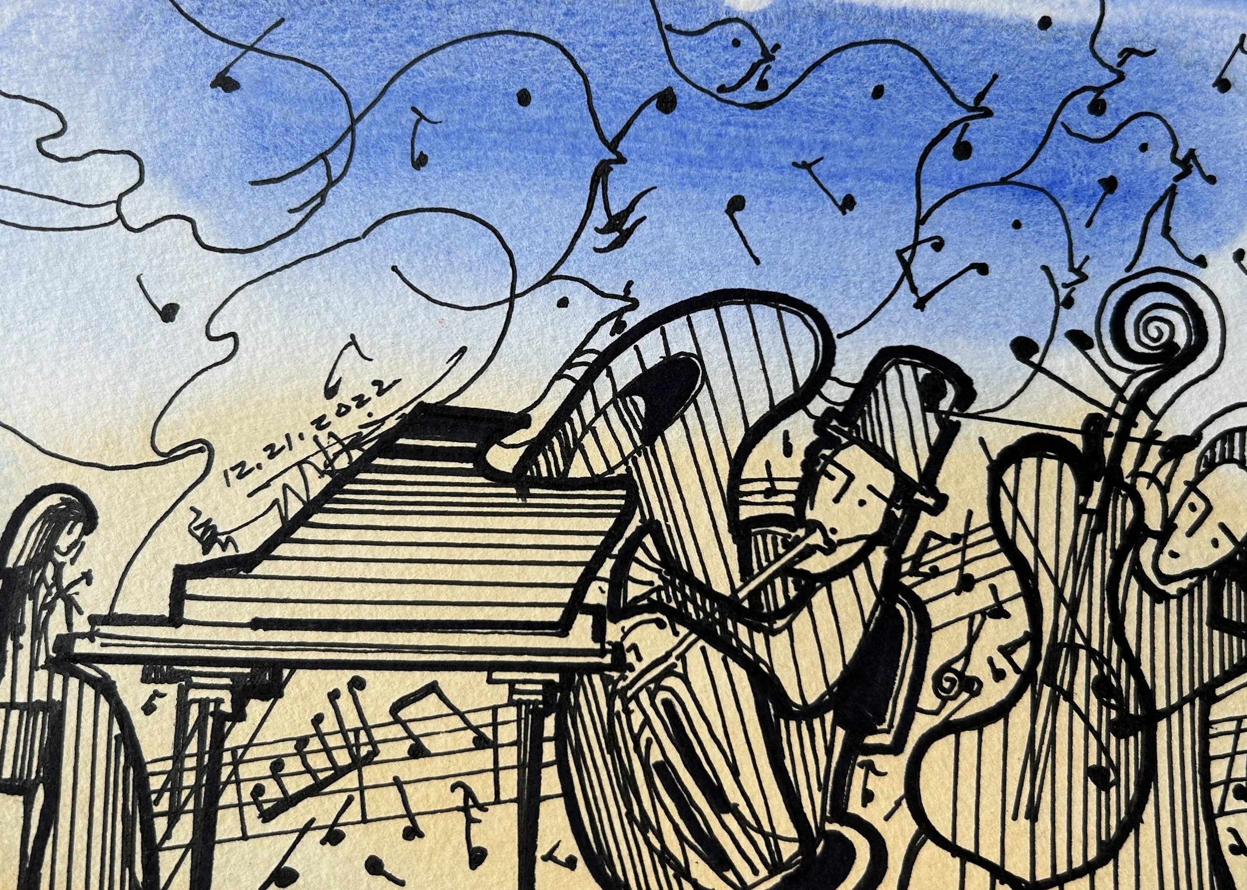 These works featured musicians, dancers, and vibrant colors, reflecting the belief that even amid war, art can preserve dignity, joy, and memory — a prayer carried through form and color.